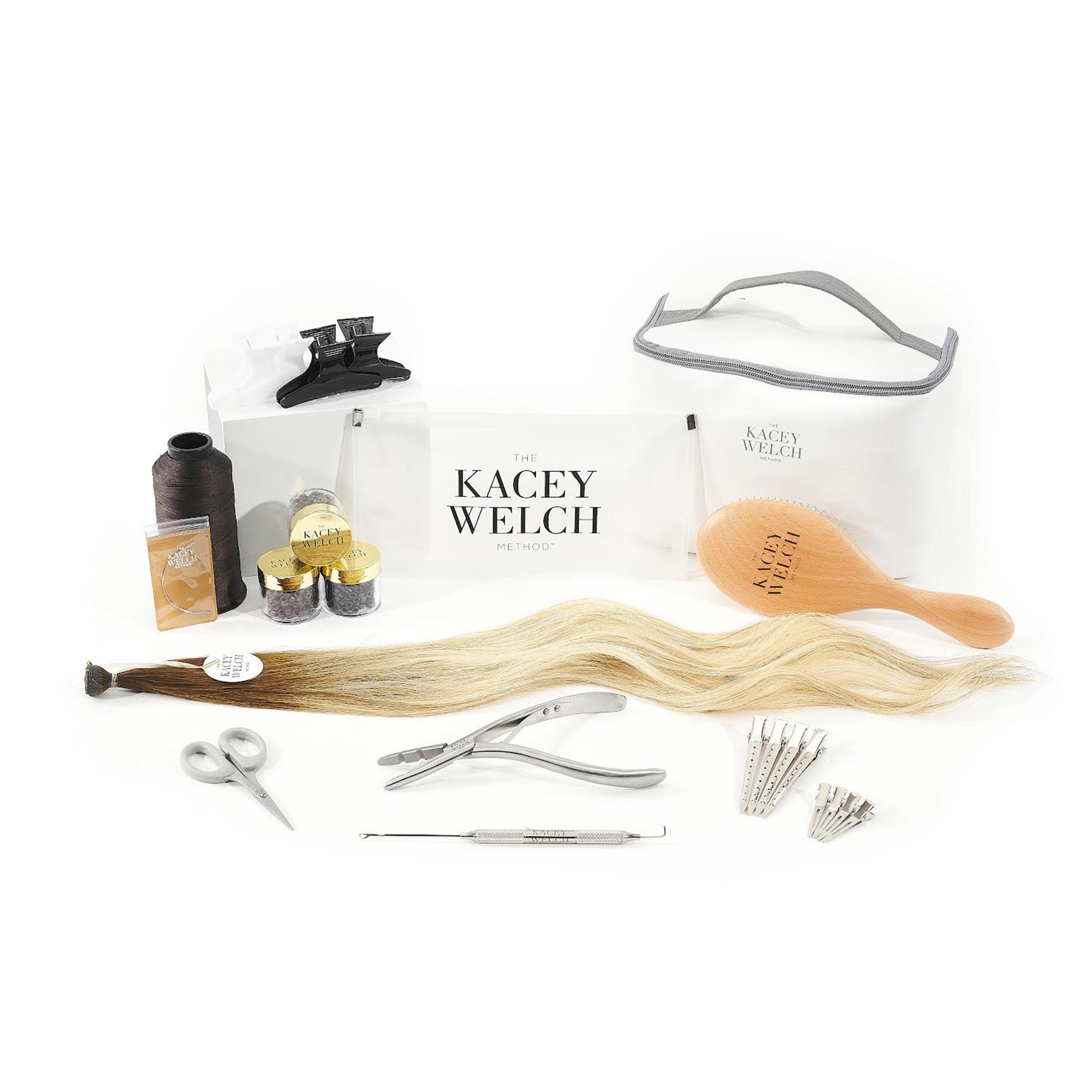 The Kacey Welch Method Full Kit comes with everything you need to perfectly install our Silk Wefts. All of our products are customized and are sold exclusively through KWM!