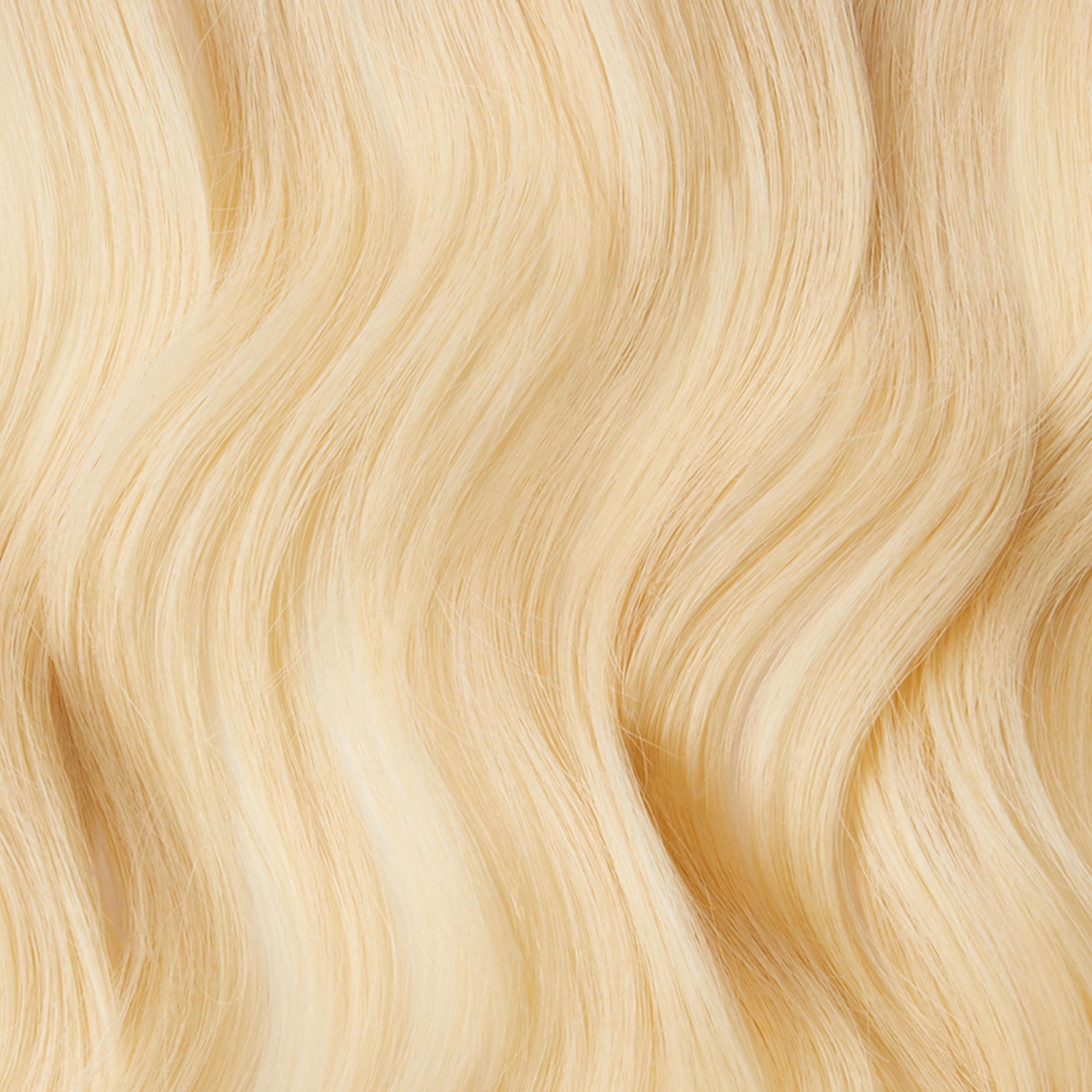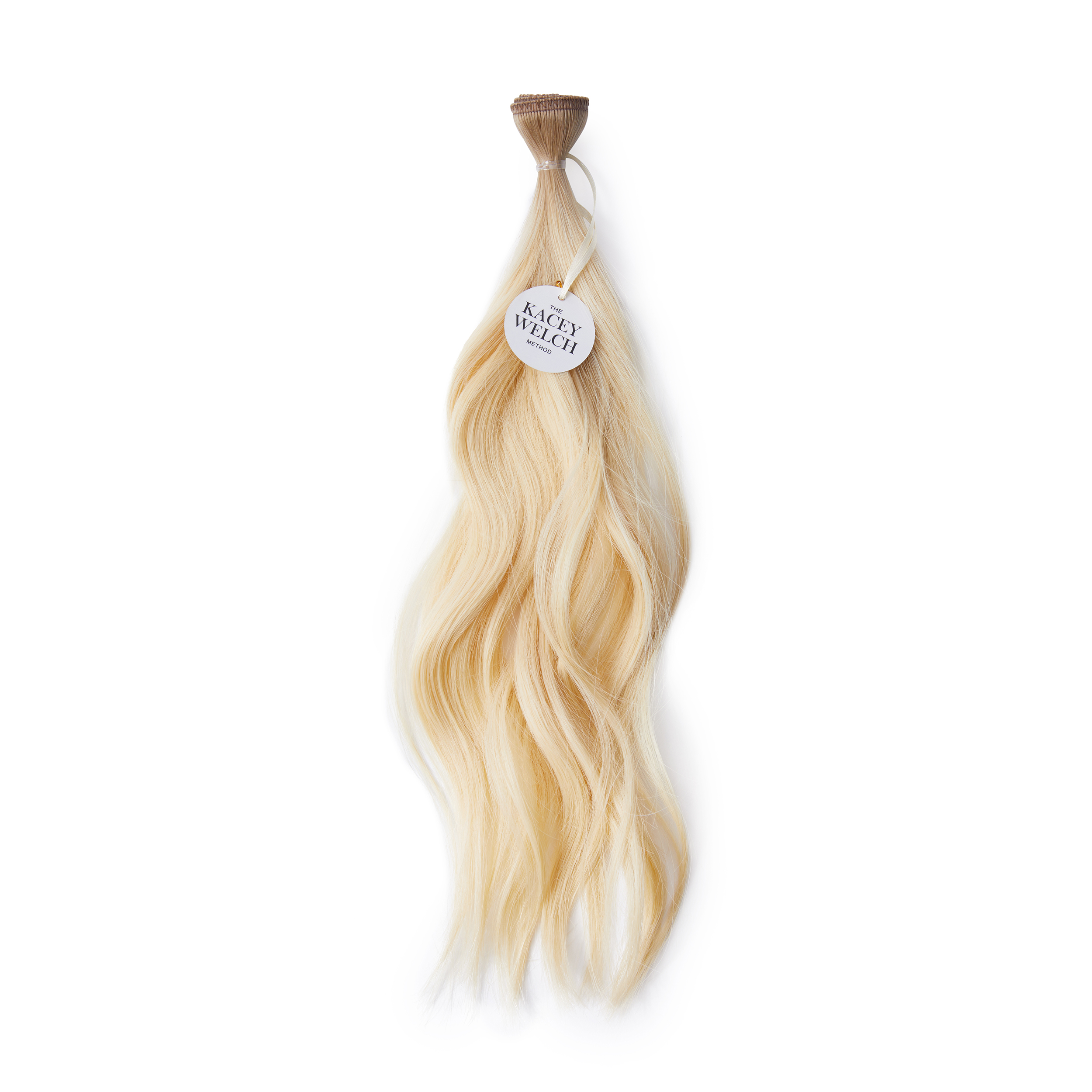 This is our brightest, most solid blonde. Made with 100 percent Grade A+ hair. Designed to lay perfectly flat to the natural head, Silk Wefts are made with a tiny piece of Silk at the top of their construction to give a comfortable fit. There is no return and all Silk Wefts can be cut vertically and will never unravel. These are not hand tied wefts. Silk Wefts go in perfect tandem with The Kacey Welch Method and most sew in methods.