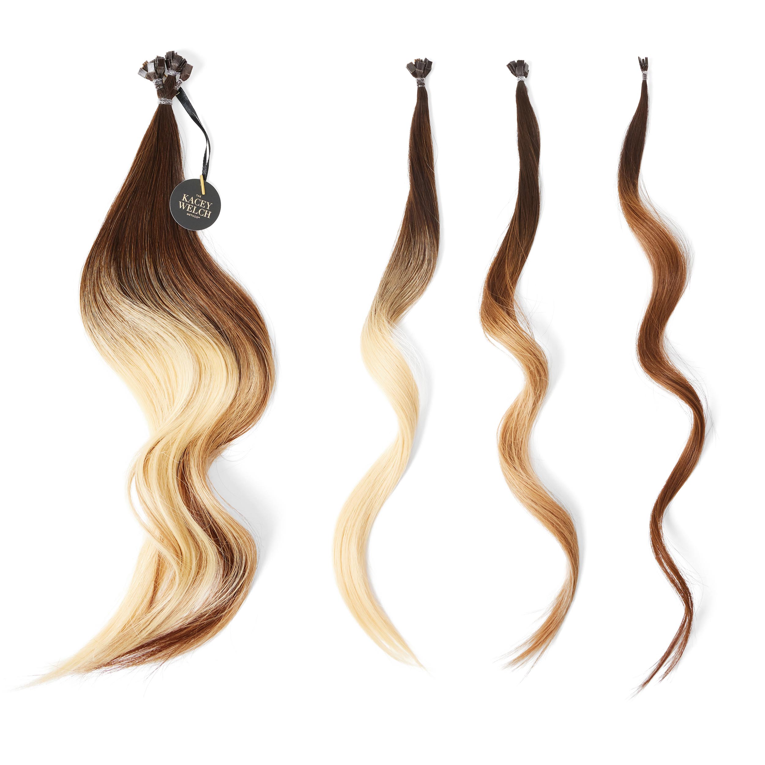 Leaning on the warmer side is this beautiful, sun-kissed blend. Made with 100 percent human hair. Designed to lay perfectly flat to the natural head made with darker bonds meant to blend seamlessly with the hair. Our Flat Tip Individuals can easily be worn as full bonds or simply cut in half to create a smaller bond for finer hair and detailed work around the face. Follow Kacey’s color mapping to create a perfect blend or create your own custom looks.