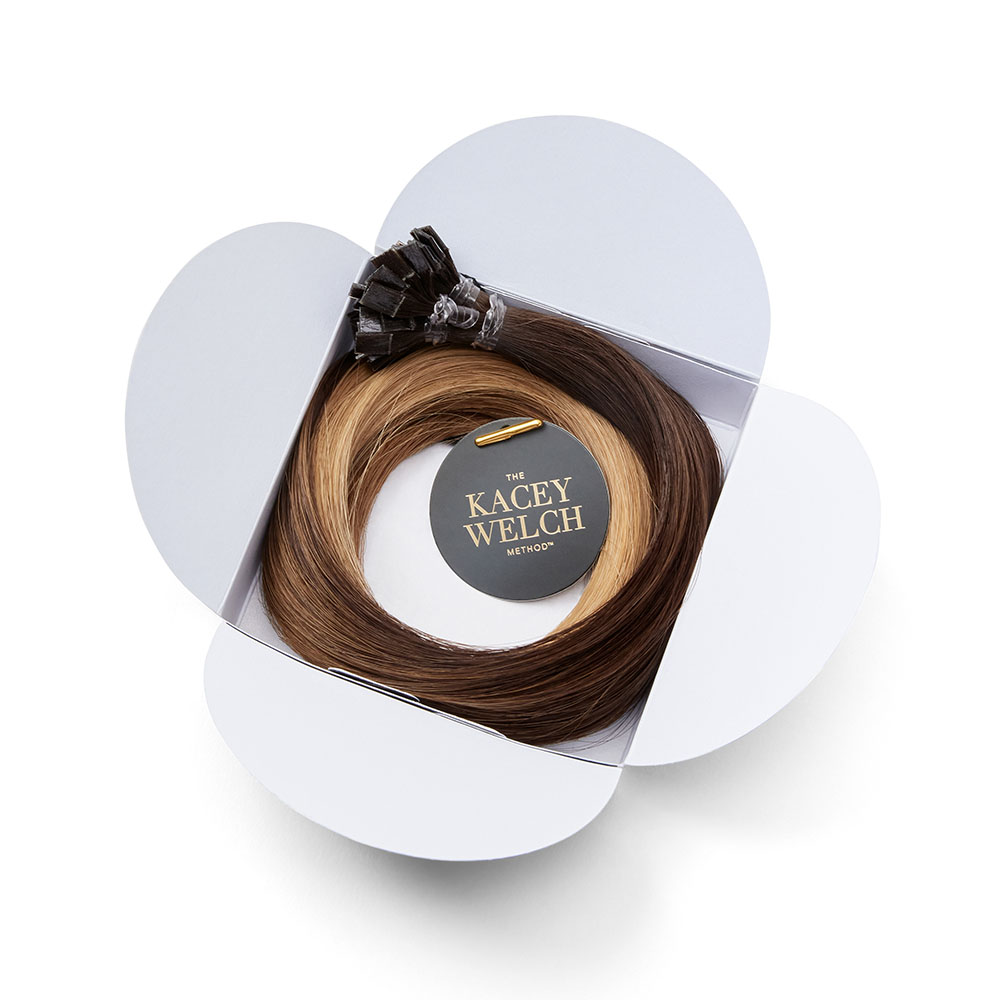 A perfect, blended brunette. Made with 100 percent human hair. Designed to lay perfectly flat to the natural head made with darker bonds meant to blend seamlessly with the hair. Our Flat Tip Individuals can easily be worn as full bonds or simply cut in half to create a smaller bond for finer hair and detailed work around the face. Follow Kacey’s color mapping to create a perfect blend or create your own custom looks.